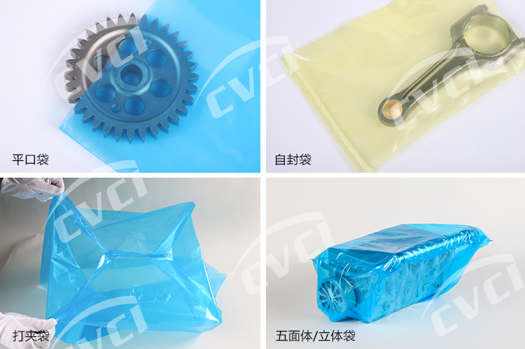 氣相防銹塑料薄膜以聚烯烴類樹脂為基材,加入揮發(fā)性緩蝕劑(VCI),經(jīng)過一些列工藝制成。氣相防銹膜在實際應(yīng)用中主要以袋狀或片狀形式呈現(xiàn)(詳見產(chǎn)品狀態(tài)),包裝保護客戶的產(chǎn)品,集防銹與包裝功能為一體。我們膜的厚度、顏色、尺寸及形式根據(jù)客戶實際需求進行定制化、個性化生產(chǎn)。多金屬用氣相防銹膜對黑色金屬及銅、鋁等多種金屬具有良好防銹性能。
